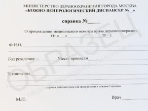 - сразу же после обработки менеджер направится в кожно-венерологический диспансер – для посещения врачей и заполнения результатов анализов;